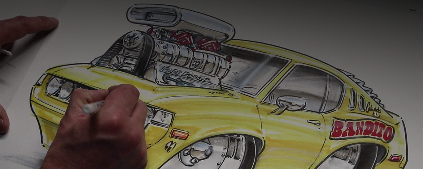 Home of artwork by Andrew Kerr. His favorite thing to draw is his custom Car-Toons. Also available is; realistic drawings of vehicles, acrylic paintings, oil paintings, digital renderings, and t-shirt designs. Much more planned for the future, Stay Tooned!